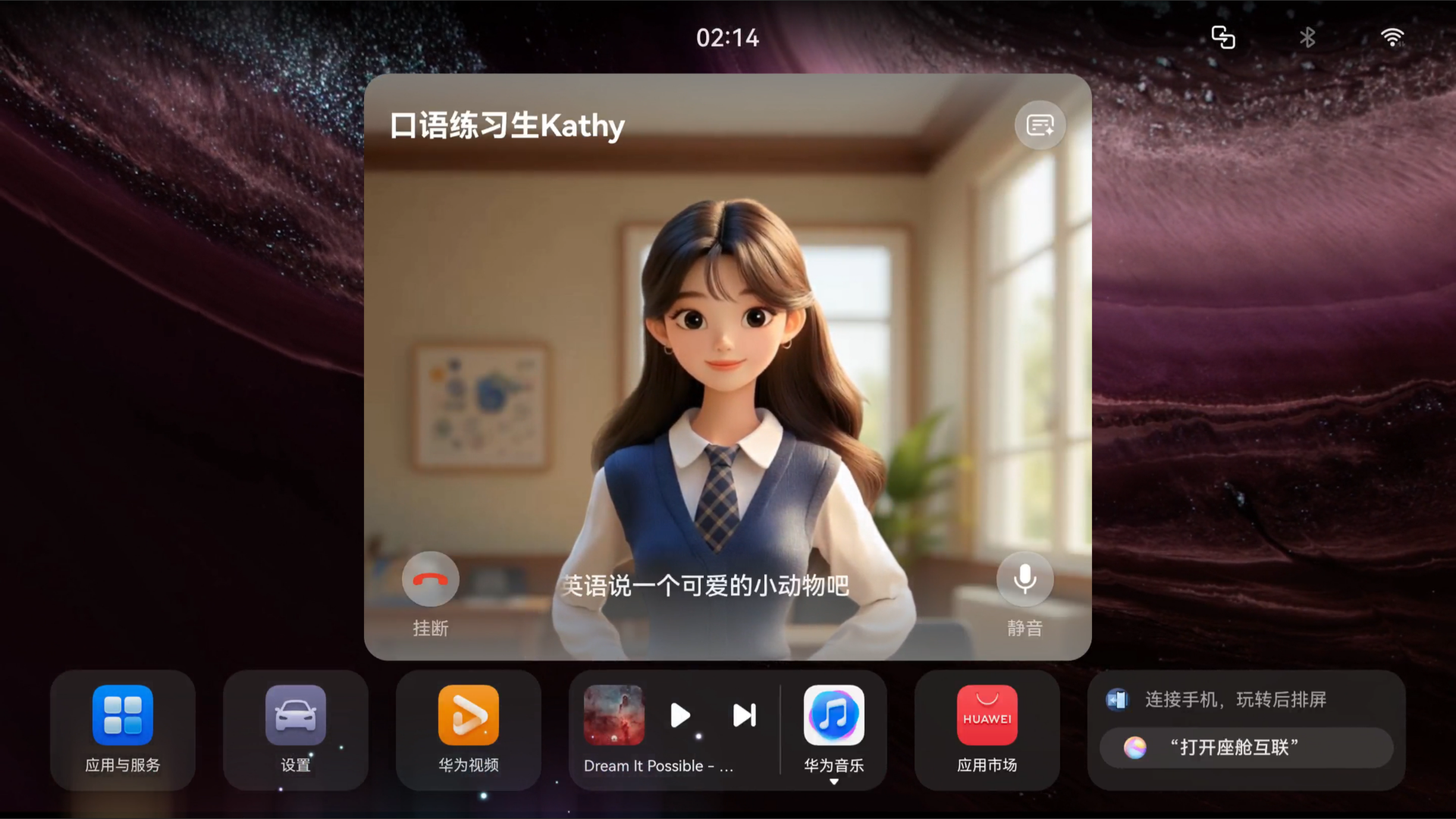 同时,小艺推出美团、喜马拉雅、口语练习生三大智能体,进一步拓展出行场景的服务边界,让多元化生活需求在车内就能无缝解决。下班高峰堵车时想提前订晚餐,只需说 "小艺,我想订餐到家",美团智能体会自动推荐家附近高分餐厅,确定选择后指令完成预约及点单,全程语音操作无需停车。堵车无聊时还可以召唤小雅,“找一期娱乐相关的播客",小雅大窗会显示多条播客列表供选择播放,精准匹配泛听需求;语言学习爱好者也可以通过小艺“召唤口语陪练"开启英语对话,口语练习生Kathy会模拟机场问询、商务谈判等场景,帮助你训练口语,并提供实用表达,让碎片时间也能高效提升英语口语能力。