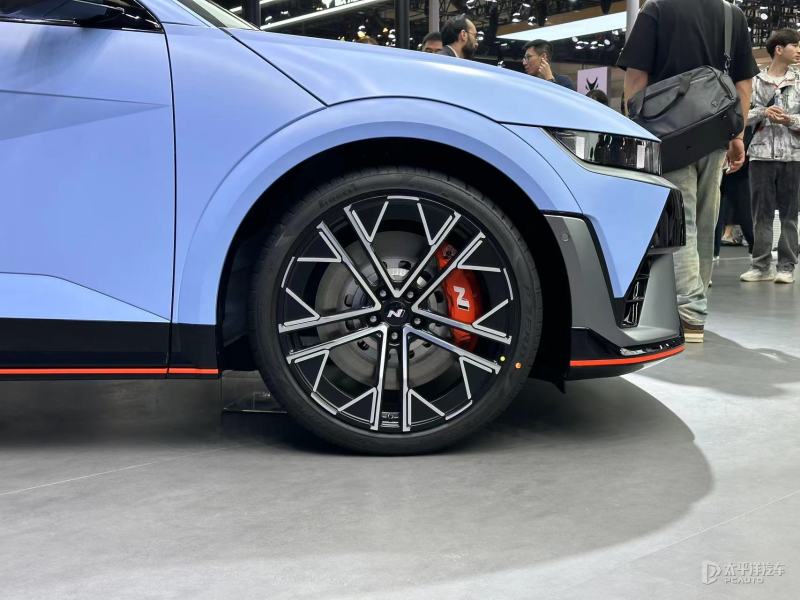 相比于IONIQ 5标准版而言,IONIQ 5 N在整体高度上降低了20mm,底部宽度增加了50mm,以适应更宽的轮胎。由于采用了全新的扩散器设计,车身长度也增加了80mm。为了保证车辆在高速过弯时的稳定性,该车配备21英寸轻质铝合金轮圈和高抓地力的275/35 R21倍耐力P-Zero轮胎,确保车辆的操控性能和更稳定的赛道抓地力。