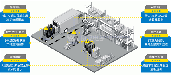 威盛电子最新推出的威力智能M168Pro叉车AI安全监控套件,正是为了用AI填上这道致命缝隙。它以先进的AI视觉技术为核心,为高危作业区划出一道无形的“智能围栏”,将疲劳驾驶、盲区碰撞、动态侧翻等关键风险一网打尽,以主动式智能防御体系替代传统被动式监管,为企业筑起全时段、无死角的本质安全屏障。